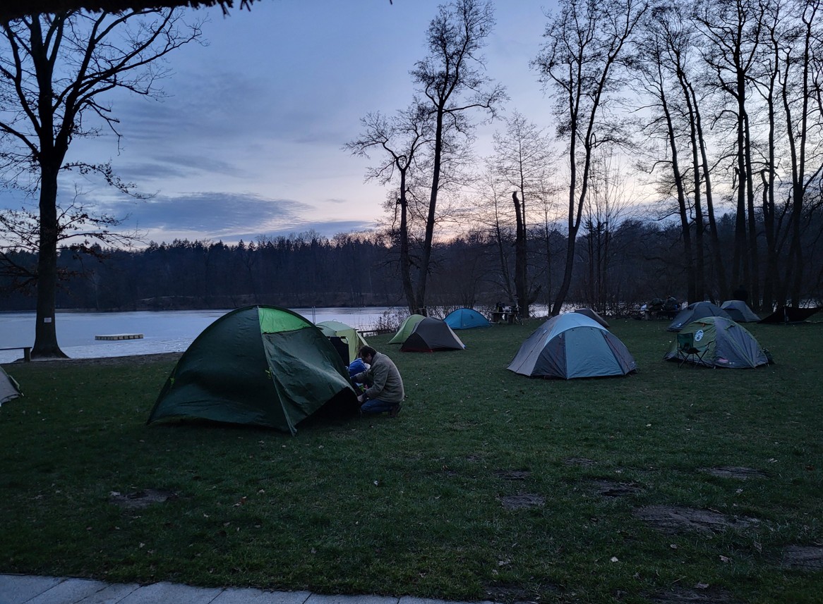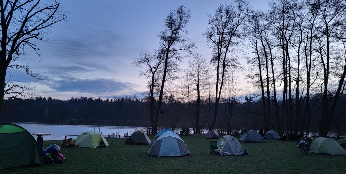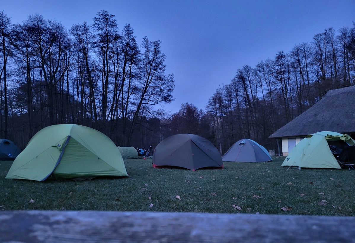 Nach und nach trafen die Kollegen mit Sack und Pack ein und bereiteten das Zeltlager für die Nacht vor. Ausgeklungen ist der Abend am Lagerfeuer mit frisch Gegrilltem und geistigem Getränk.
